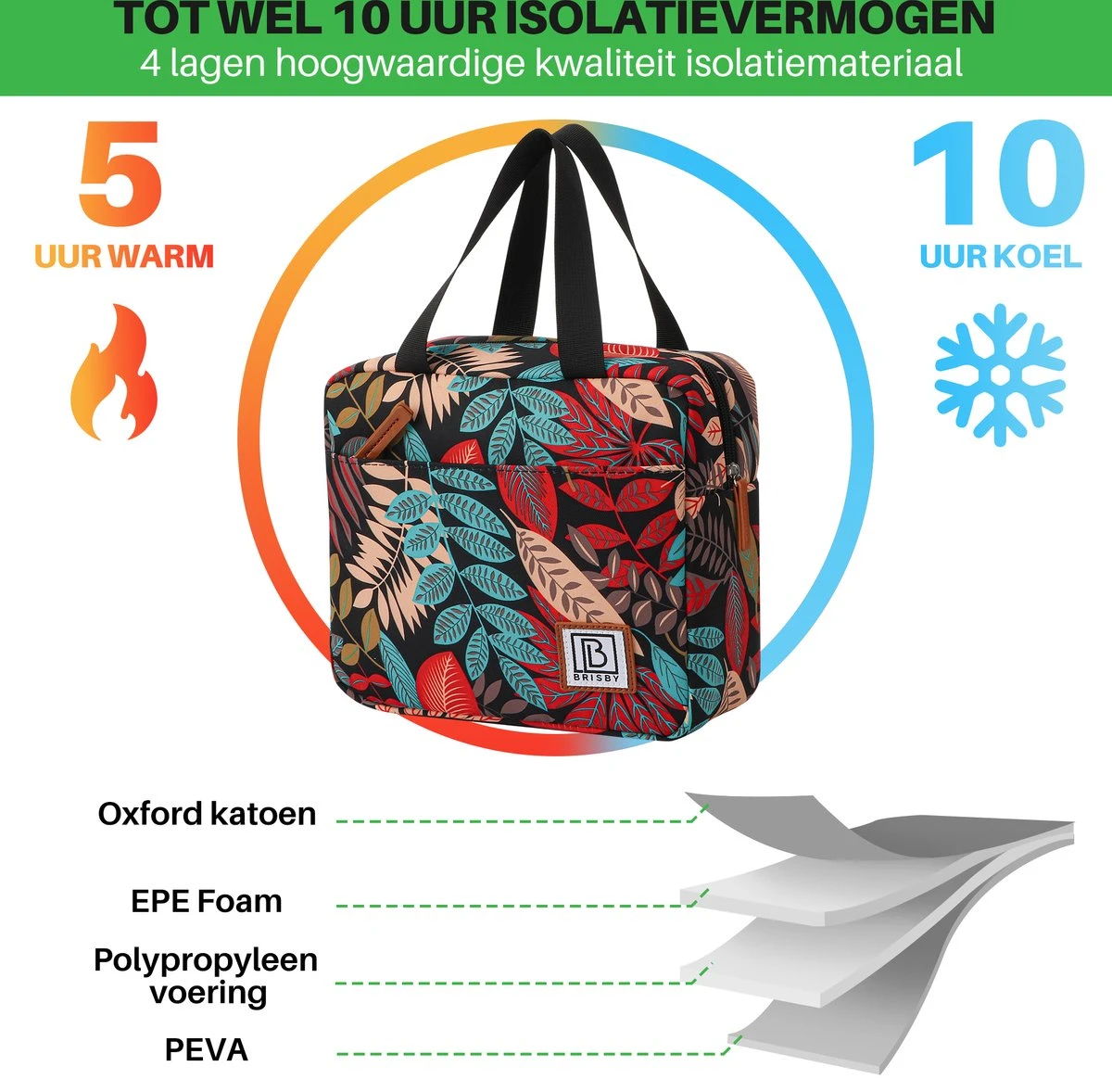 Er zijn in totaal vier lagen voor optimale isolatie. En natuurlijk is er het gratis koelelement dat jou de garantie geeft op heerlijk en vers eten.