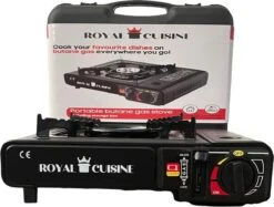 Productbeschrijving Dit draagbaar gastoestel van Campingman beschikt over één brander met een vermogen van 2200 Watt. Het gasfornuis wordt geleverd in een plastic koffer waardoor deze eenvoudig mee te nemen is. Bevat een vergrendelingshendel voor de gascartouche, een piëzo-ontsteking en een pandrager met een geëmailleerde laag.