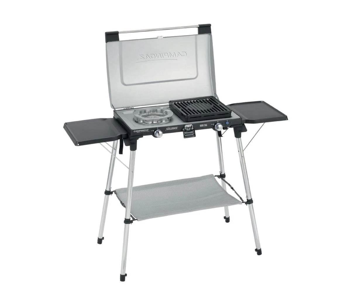 De Xcelerate 600 SG van Campingaz is het ideale camping kooktoestel voor het bereiden van heerlijke gezinsmaaltijden in de buitenlucht. De 600SG is uitgerust met twee krachtige, afzonderlijk regelbare branders en met compleet afneembare roosters voorzien van een antikleeflaag.