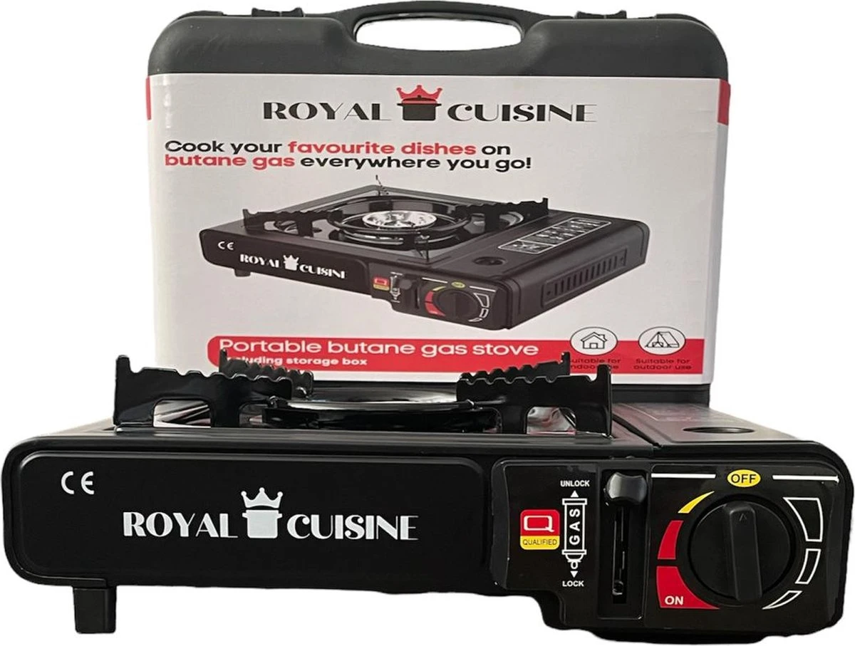 Dit draagbare model camping fornuis is een compact kooktoestel dat ideaal is voor op reis. De één pits brander heeft een vermogen van 2500 Watt en met de handige elektrische piezo ontsteking geeft het aansteken van de brander geen problemen. Het gasstel zit in een robuuste draagkoffer en maakt hem zo de perfecte reisgezel voor uitstapjes en kamperen. Het kooktoestel heeft een ingebouwd compartiment voor een gas cartridge, deze is niet inbegrepen.