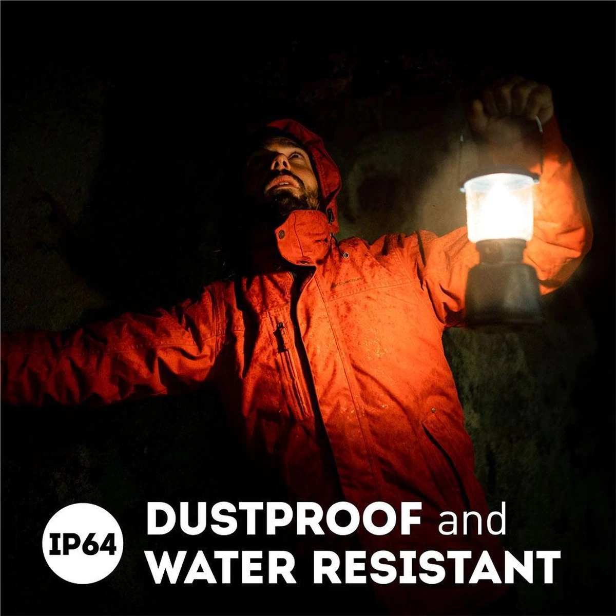 Wil je graag kampeerverlichting aan een balk of in de tent ophangen? Geen probleem, want er zijn twee ophangmogelijkheden. De campinglantaarn heeft een uitklapbare beugel en aan de onderkant van de lantaarn zit een geïntegreerde haak. Tip voor liefhebbers van direct licht: draai eenvoudigweg de lampenkap eraf. Daardoor verbeterd de lichtopbrengst waardoor de gehele tent verlicht kan worden.