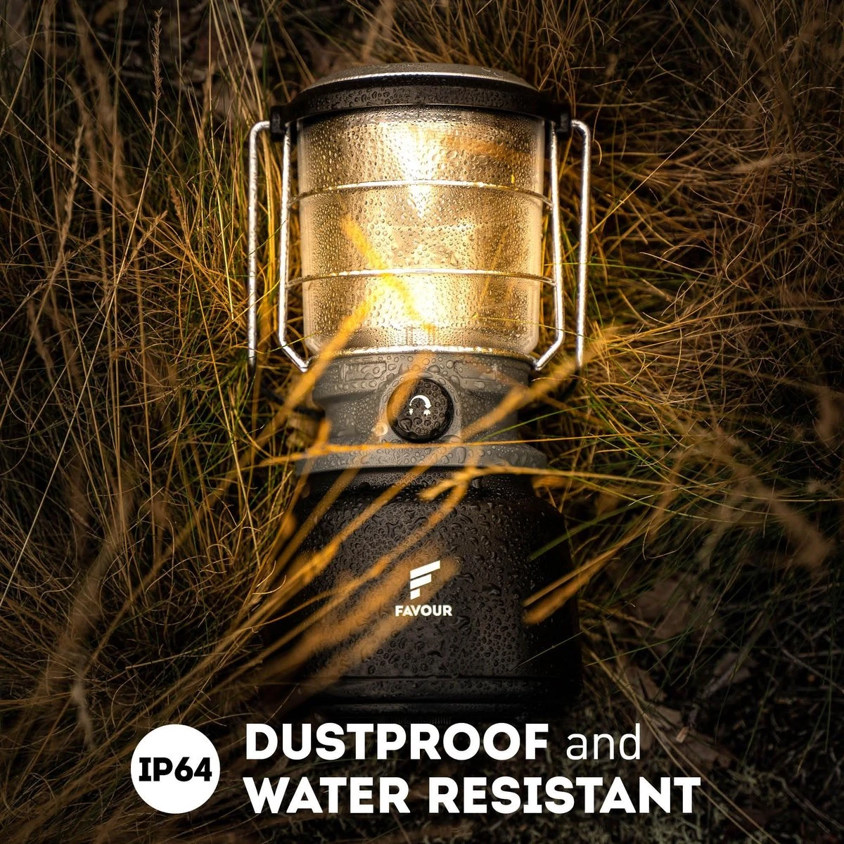 WATERPROOF – Optimaal geschikt voor buitengebruik, voor tuinieren en kamperen in alle weersomstandigheden. De buitenlantaarn met robuuste schokbestendige behuizing is beschermd tegen vallen van een hoogte tot een meter en is ook waterbestendig beschermingsklasse IP64.
