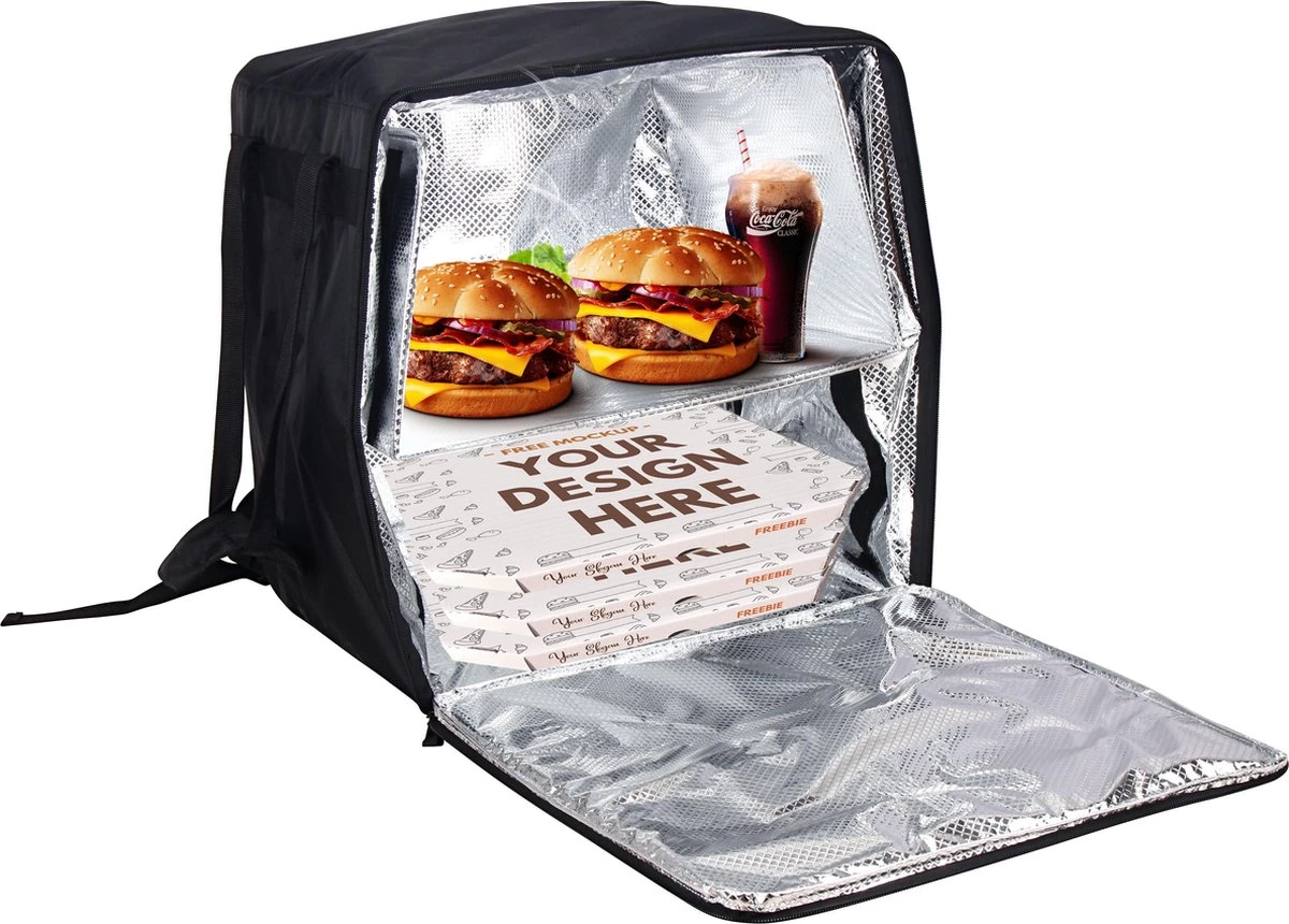 stevige bezorgrugzak, ideaal voor het bezorgen van grote hoeveelheden maaltijden. De bezorgrugtas heeft twee brede schouderriemen en borstriem voor extra draagcomfort. Het grote vak van de tas is makkelijk toegankelijk aan de achterzijde via een dubbele ritssluiting aan drie zijden. Aan de binnenzijde van de rugzak bevindt zich een scheidingswand welke te verstellen is via klittenband. De bezorgtassen zijn geïsoleerd door middel van schuim en een folie wat uw producten zowel koud als warm houdt en makkelijk te reinigen is.