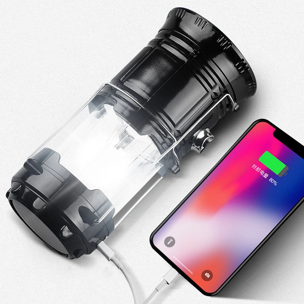 De TDR-2 in 1 Multifunctionele Solar LED Campinglamp kan op verschillende manieren worden opgeladen, waaronder via zonne-energie, batterij of USB. Bovendien heeft deze lamp een powerbank-functie waarmee u uw smartphone en andere USB-apparaten kunt opladen, ideaal voor noodsituaties.