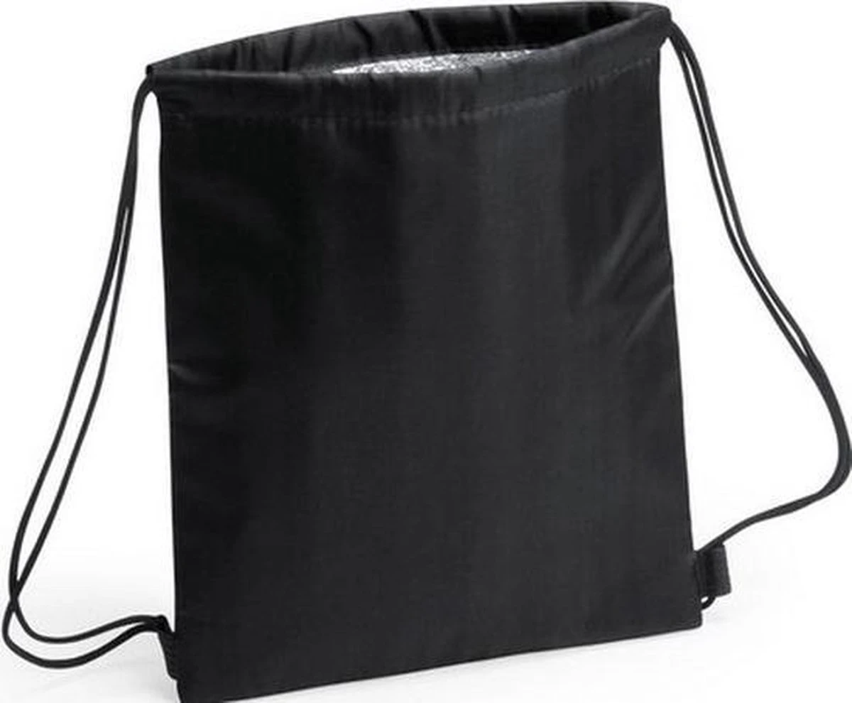 Zwarte koeltas rugzak 27 x 33 cm. Koeltas in de vorm van een gymtas rugtas. De tas heeft een isolerende (isothermische) laag aan de binnenzijde, versterkte hoeken en is voorzien van zelfsluitende drawstring rijgkoorden. Voldoende ruimte voor het opbergen van uw lunch en flesjes/blikjes drinken. Formaat: 27 x 33 cm. Materiaal: zacht polyester, aluminium. Koeltassen rugtassen/rugzakken gymtasjes. Ideaal voor onderweg/op reis, in het park, op het strand of tijdens een schoolreisje.