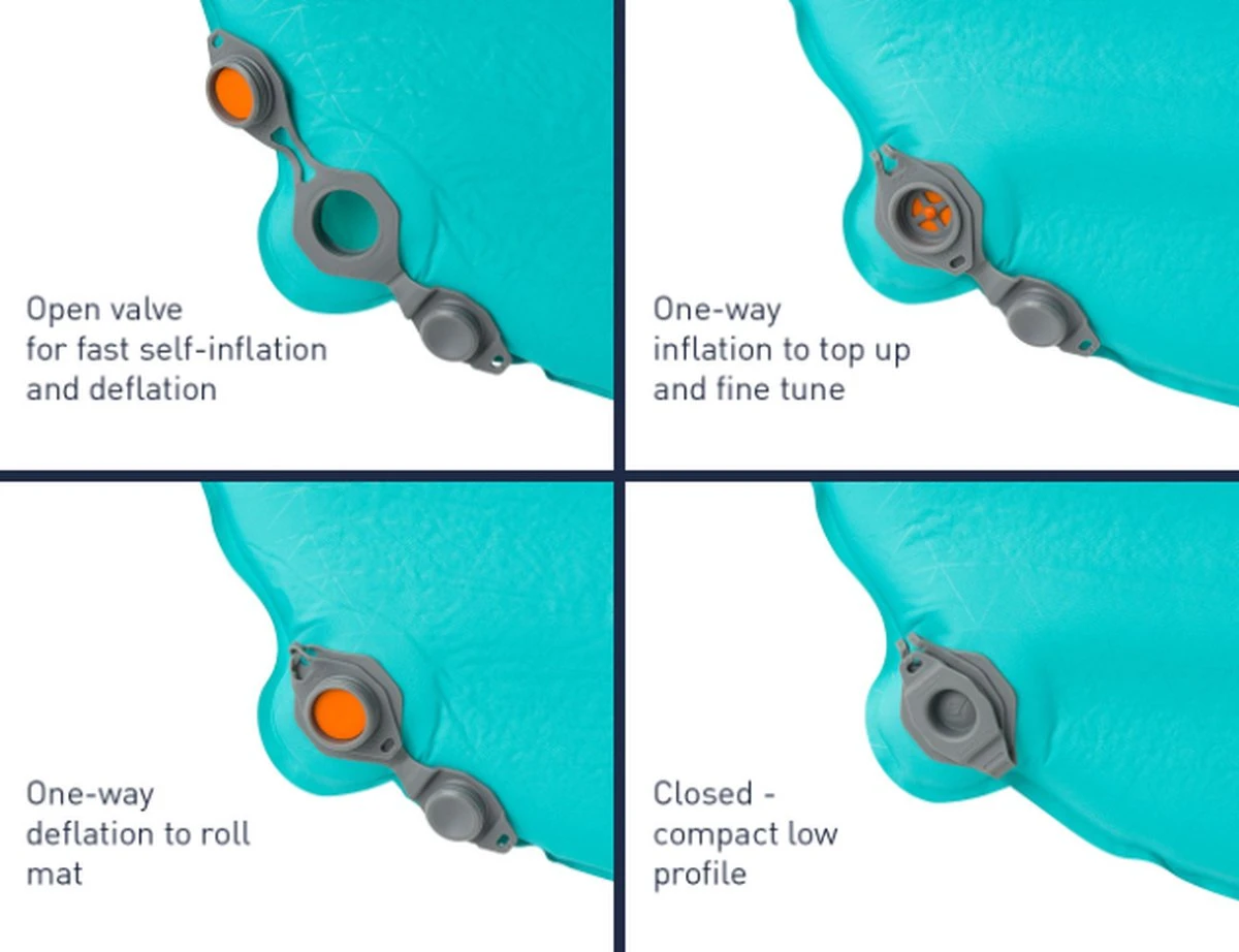 -Multi functioneel ventiel met grote toevoer zodat het snel opgeblazen is maar de mat blaast zich niet op als je hem oprolt. Daarnaast is het eenvoudig om de mat optimaal af te stellen voor extra comfort