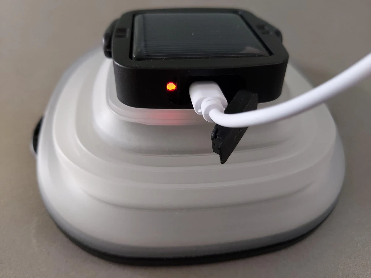 De solar lamp geeft voldoende licht om het gezellig te maken op de camping. Door het haakje aan de lamp kun je hem op elke gewenste plaats in de voortent hangen.