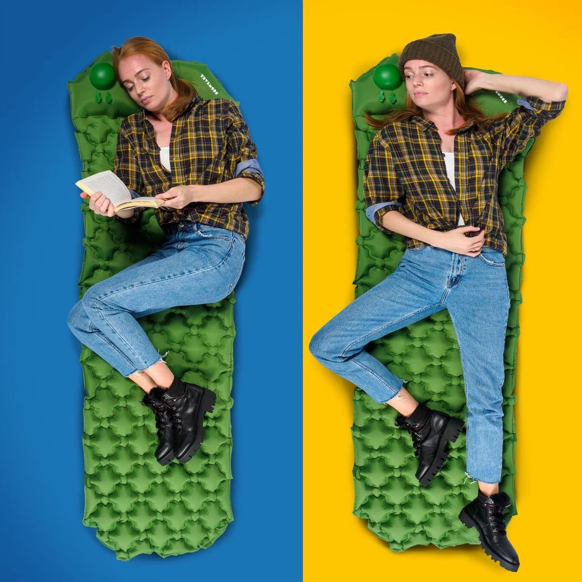 TRVLMORE Slaapmat – Zelfopblazend – 1 Persoons – Ingebouwde Pomp En Kussen – Groen